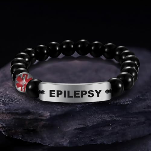 • ♥Design♥: This is a medical alert Bracelet for women and men. The design is very attentive and unique, made of stainless steel curved brand and black stone, the length of the bracelet can be adjusted,Stretch Bracelet, and a bead is printed with a red alarm symbol, which is bright in color, easy to view, and comfortable to wear. You can also customize your own information on the nameplate; suitable for men and women; Medical Alert Tags You can customize the information you want