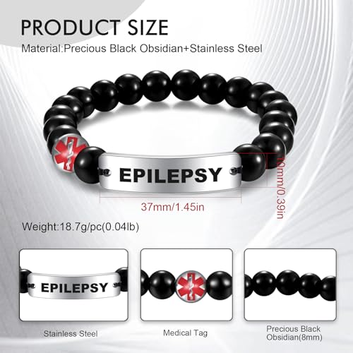 • ♥Material♥: This life alert medical id Bracelet is composed of stainless steel and obsidian. It will not lose its luster and oxidize, will not rust or discolor, it is non-toxic and has no harmful ingredients, and is safe for the skin. You can always wear it with confidence