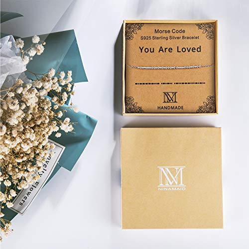 HOT ! Morse Code S925 Sterling Silver Bracelet for Women Beads Jewelry Mother Inspirational Bracelet Mother's Day Birthday Gift for Mom Women