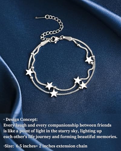 • [Material & Size] - The Friend Star Bracelet with layered design is made of stainless steel and suitable for daily wear. The bracelet size is 6.5 inches+ 2 inches extension chain