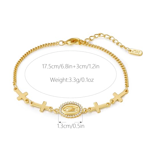 14K Gold Plated Virgin Mary Cross Bracelet for Women catholic bracelets Confirmation Gifts with Sparkling Zircon Stones religious bracelets first communion gifts 7