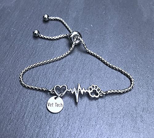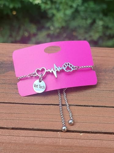 Vet Tech Paw Print Stainless Steel Adjustable Bracelet Veterinary Technician Jewelry 4
