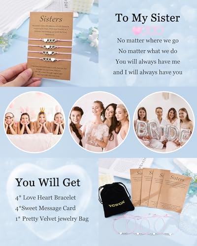 VGWON 2/3/4 Pcs Sisters Bracelet, Sisters Gifts from Sister, Matching Heart Long Distance Bracelets, Gift for Birthday Thanksgiving Christmas 4