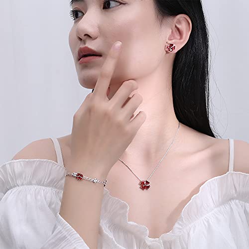 JIANGXIN Lucky Four leaf clover 925 Sterling Silver Birthstone Chain Link Bracelet for Women Gemstone Jewelry Shamrock Birthday Gift 16+4cm 4