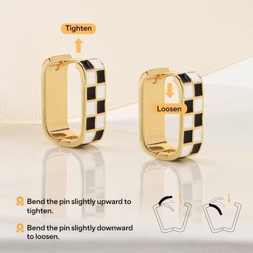 • Solid Closure: The clasps of checkered accessories women can close properly.They're not easy to open up while you're wearing them.If the hoop earring clasp isn’t closing securely, try gently bending the pin upward or downward slightly to adjust it