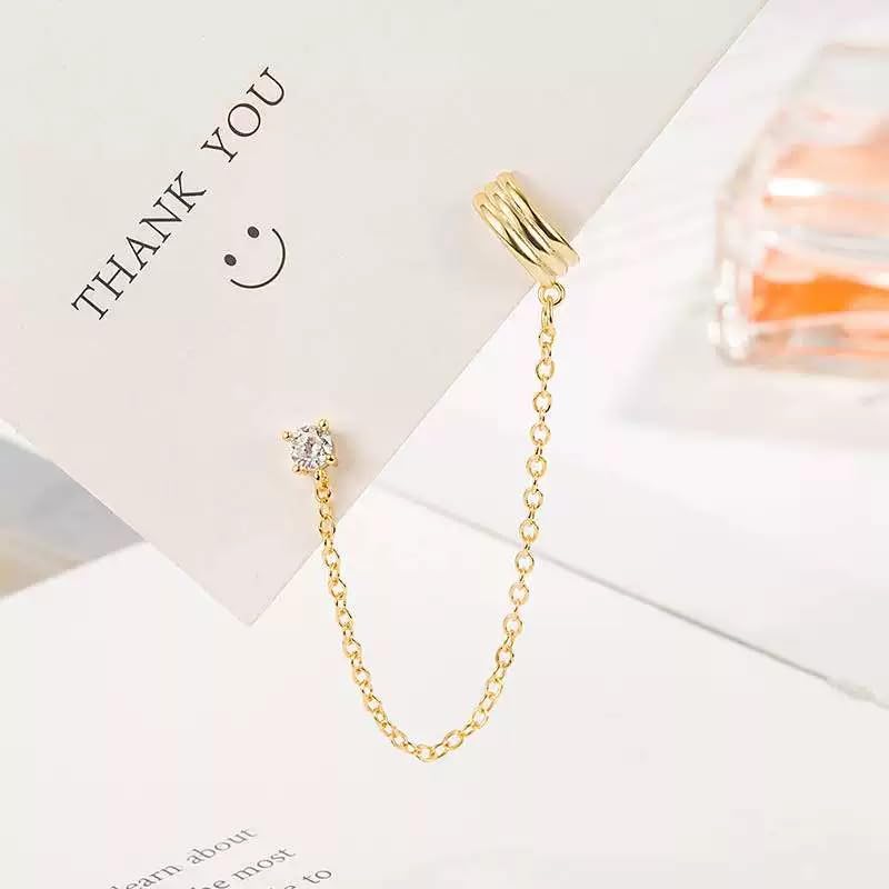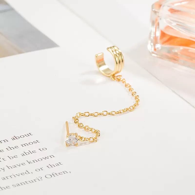 • DESIGN: Trendy ear cuff design featuring a delicate chain that connects a crystal stud to a textured gold-tone cuff, creating an elegant double-wear look