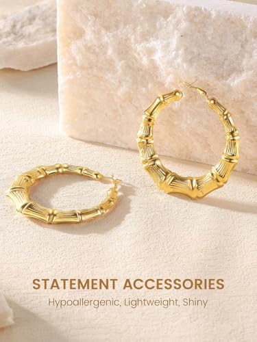 • Perfect for Any Occasions: Effortlessly elevate your style with our bamboo earrings, the perfect blend of simplicity and sophistication. Whether you're casual in jeans or dressed up for a special occasion, these versatile statement hoops complement any outfit, making you shine wherever you go.