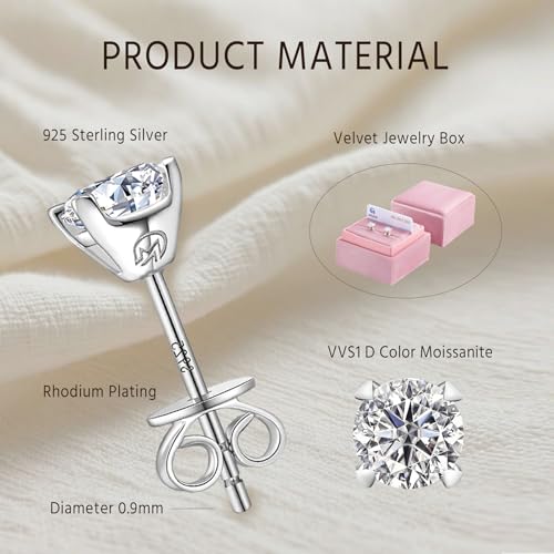 Moissanite Stud Earrings, Rhodium Plated 925 Sterling Silver Earrings Moissanite Jewelry Gifts for Women Men 1