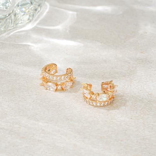 HOT ! WEARON Ear Cuff Earrings for Women, Ear Cuffs Non Piercing, 14K Gold Plated Jewelry Zircon Diamond Turquoise Earrings Hypoallergenic Jewelry Gifts for Woman