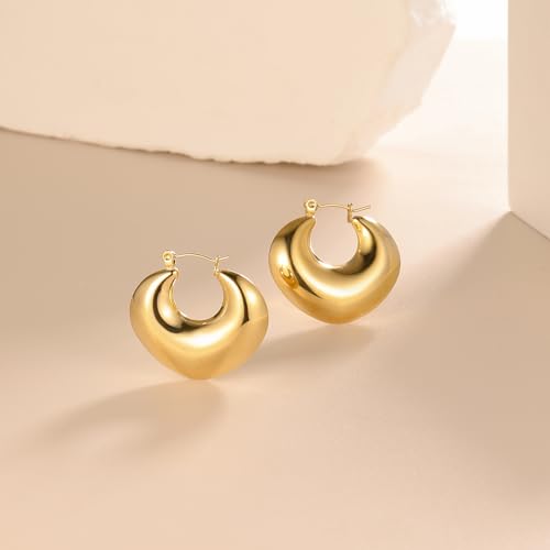 • High Quality Material - These gold chunky earrings are made of stainless steel with attention to detail while 18K gold plating polished finish adds a touch of sparkly glamour to any outfit. Tarnish free, lead fee and nickel free, these chunky gold hoops are lightweight and comfortable for extended wear