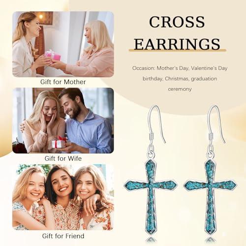 • Cross Dangle Earrings Material: Turquoise cross earrings for women is made of 925 sterling silver, ensuring its glossiness and durability, hypoallergenic and safe for sensitive skin, inlaid with turquoise is sparkling. The intricate detailing and sleek finish make them a standout accessory for any occasion