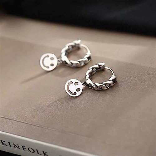NALsa Trendy Silver Color Women Earrings Metal Retro Smiley Face Pattern Drop Dangle Earrings for Women Party Jewelry 1Pair 1