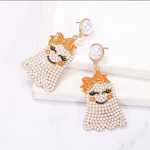 • Halloween Ghost Earrings-Looking for some spooktacularly fun earrings for halloween season?You'll just love our new trendy beaded earring.You'll just love our fashion styles of halloween theme earrings.These handmade beaded drop earrings are all designed with the inspiration of halloween elements,pearl ghost pumpkin earrings great for spooky dress up,halloween themed parties.