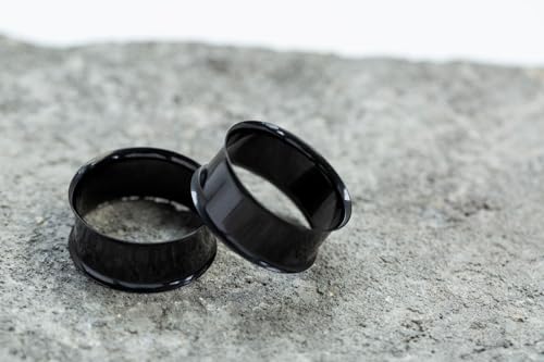 • STYLE: Black Double Flared Tunnel Plugs in 316L Surgical Steel with Titanium IP