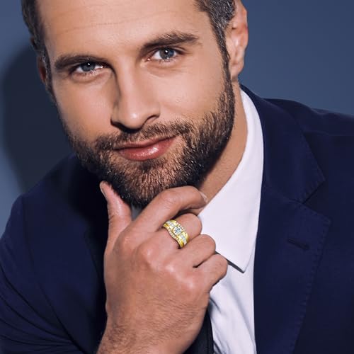 Moissanite Engagement Rings Mens Wedding Band 925 Sterling Silver 14K /White Gold Plated Promise Rings for Him 0.8CT Round Cut Anniversary Jewelry Gifts Size 8-12 3