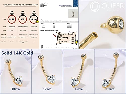 HOT ! OUFER Gold Belly Button Rings, 14K Solid Gold Internally Threaded Belly Rings, Heart Shaped Belly Button Piercing, Clear CZ Belly Piercing Jewelry, Navel Rings