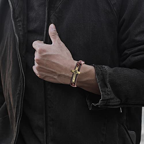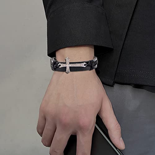WAINIS 8PCS Braided Leather Cross Bracelets for Men Woven Bracelet Vintage Religious Christian Adjustable Wristband Bracelets Set 5