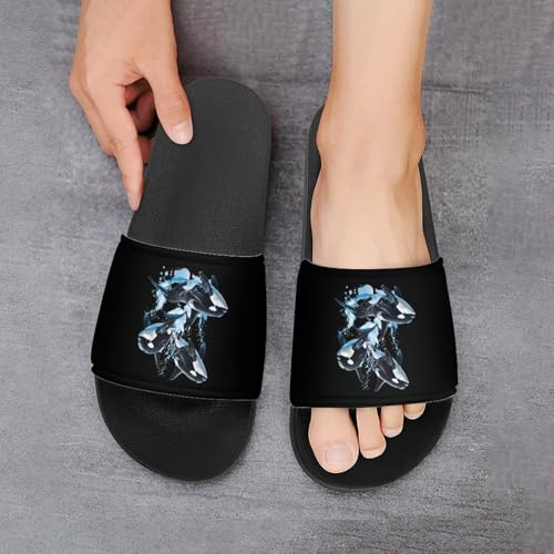 HOT ! Killer Whale Orca Whale Family Jumps Unisex Shower Shoes House Slippers Non-Slip Indoor Bathroom Shoes for Pool Beach 40 (250mm)