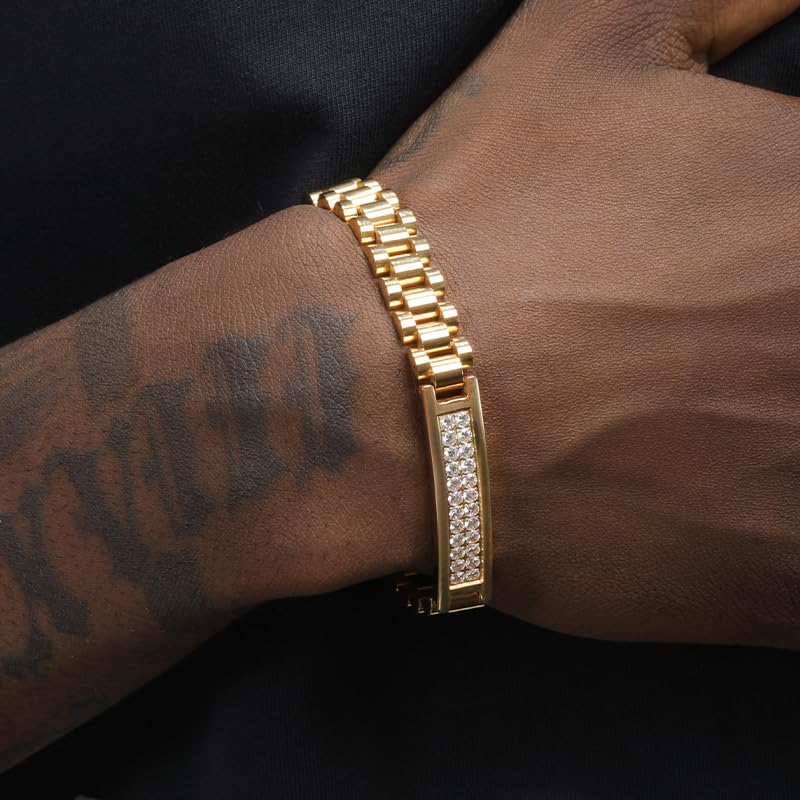 More information about 18k Gold Thick Strap Chain Bracelet For Men | Miami Cuban Watch Chain For Men And Women As A Gift