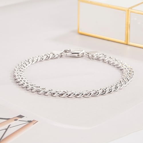 Italian Sterling Silver Cuban Link Chain Bracelet Men 3MM 4MM 5MM 6.3 "6.7" 7 "7.5" 8 "8.5" 9 "Solid 925 Silver Bangle For Woman Cuff Jewelry Gift 4