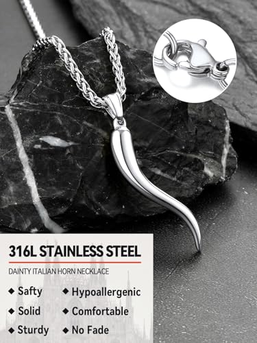 FaithHeart Italian Horn Pendant Necklace for Women Men Silver/Black/Gold Plated Stainless Steel Cornicello Necklace Protection Necklace Chains with Pendant Italian Charm Talisman with Gift Box 6