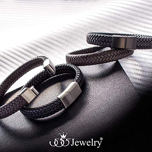 • DESIGN - stylish black leather bracelet for men & gentlemen, this ½ inch wide trendy genuine leather cuff bracelet available in length of 7.5, 8.25 and 9 inches, designed with a black leather strips forming sophisticated multi woven pattern, blended with black stainless steel hidden sliding magnetic clasp closure creating attractive upscale look.