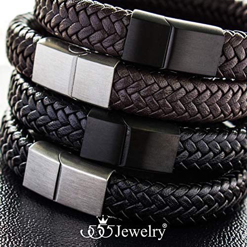 More information about 555Jewelry Stainless Steel Magnetic Clasp Braided Brown & Black Leather Bracelet for Men