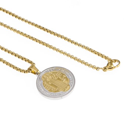 St Saint Benedict Medal Necklace, Stainless Steel Exorcism Medal Ward Off Evil Protection Jewelry Christian Gifts Catholic Gifts 1