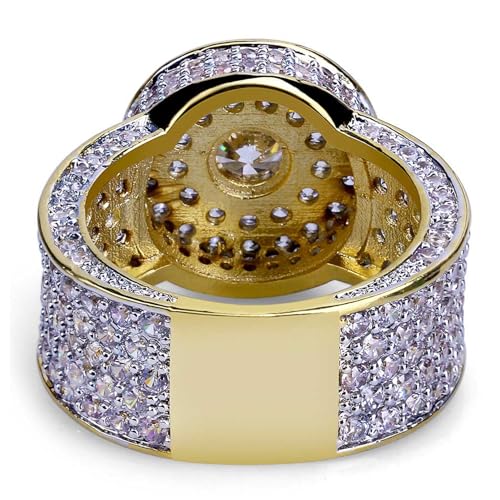 • Band Width:1.1cm. Ring Sizes Available: 7.8.9.10.11. Ring Face Size: 1.7cm. Weight: approx 12.6 grams. Package: Each Ring comes with a Black Gift Box best gift to your friends. Great Shine Ice is the name of the game and with a stone count of 231-239 prong-set CZ stones. On this silver-pronged ring, the clear stones combine with the gold for a much icier look.