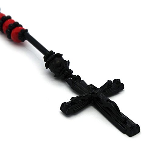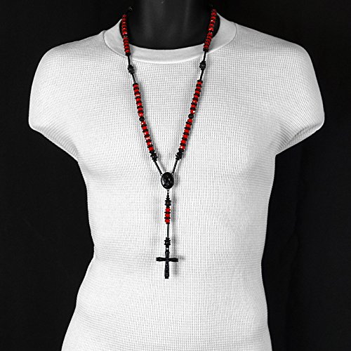• Unique and stylish design: This men's hip hop necklace features an 8mm black with red tone glass beaded chain, providing a trendy and eye-catching look. The rosary length of 32" circumference makes it a bold statement piece.