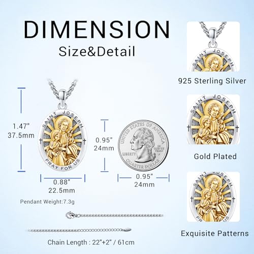 HOT ! St Joseph Medal Necklace for Men Women, 925 Sterling Silver Patron Saint Medal Necklace Catholic Protection Pendant Amulet Religious Jewelry Gifts