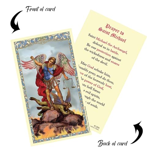 Saint Michael Rosary - Laminated Holy Card, Rosary Pouch, The Lord's Prayer - Blue Glass San Miguel Arcangel Beads, Catholic Cards Set - 4 Items 7