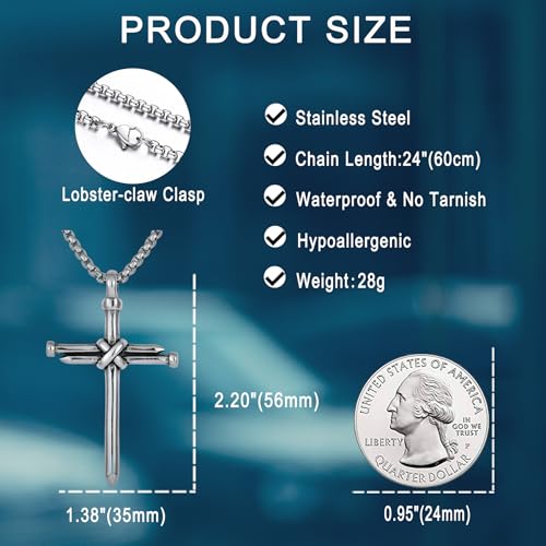 YL Cross Masonic Stainless Steel Necklace, Mens 18K Gold Plated Crucifix Religious Nail Pendant Christian Jewelry Gifts for Women 6