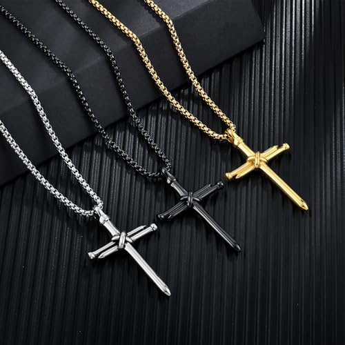 YL Cross Masonic Stainless Steel Necklace, Mens 18K Gold Plated Crucifix Religious Nail Pendant Christian Jewelry Gifts for Women 5