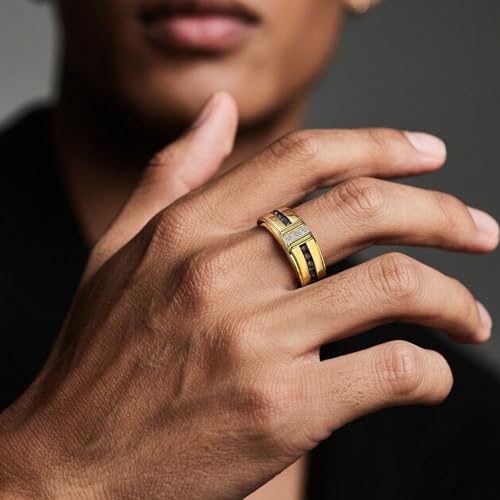 • Timeless Design: Heinlov gold plated moissanite rings for men embodies elegance with its classic silhouette—perfect for weddings and anniversaries. Featuring 3 pcs Princess Cut moissanite stones accented by 12 pcs Round Brown moissanites,total weight 1.0CTTW, the gold wedding bands for him delivers extraordinary brilliance