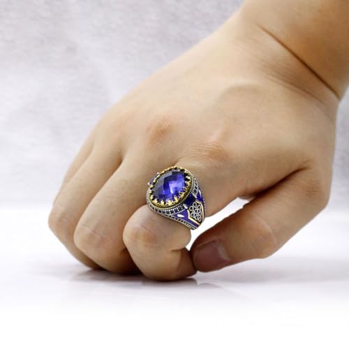 More information about Turkish Jewelry Men's Ring With Blue Glass Stone 925 Sterling Silver Vintage King Crown CZ Enamel Ring Ladies and Men's Gifts