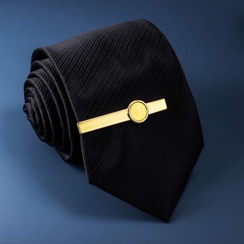 HAWSON 2 inch Tie Clips and Cufflinks Sets for Men A-Z Gold Engraved Letter Cufflinks and Tie Clips Sets for Formal Business Wedding 1