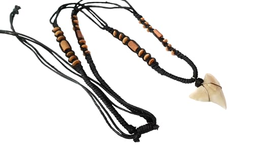 • This shark tooth necklace features an awesome genuine Mako Shark Tooth held by attractive wooden beads and waxed cords. The length of the necklace is adjustable for your perfect fit from 16 to 32 inch by sliding the slip knots of the waxed cords. A cool looking Ocean-Inspired beach surfer Shark Tooth Necklace for Men Women.