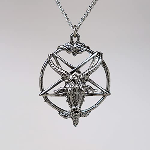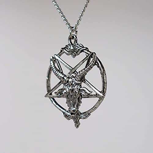Baphomet Inverted Pentacle Silver Finish Pewter Goat Head Pendant Necklace 5