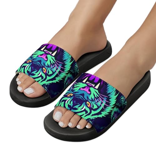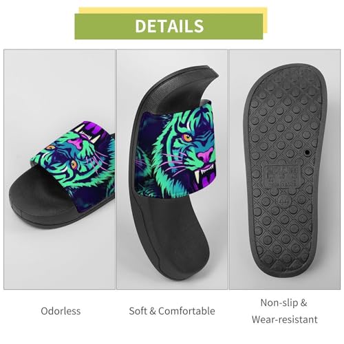 HOT ! Neon Tigers with Scary Teeth Non Slip Slides Sandals for Women Men Quick Drying Shower Shoes for Bathroom Pool Beach