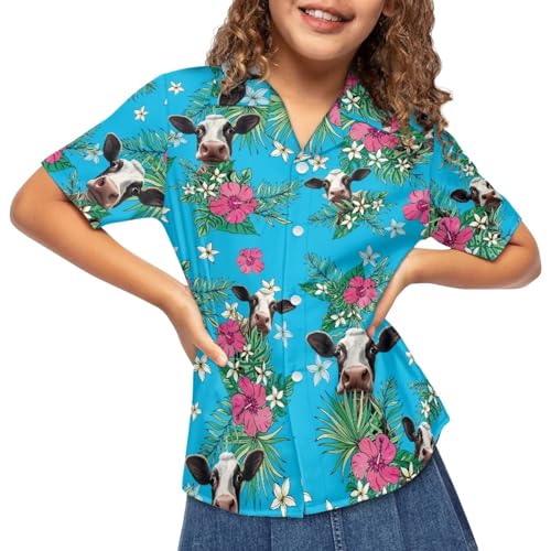 Boy Kids Hawaiian Button Down Shirt Short Sleeves Casual Summer Tops Size 3-16 4