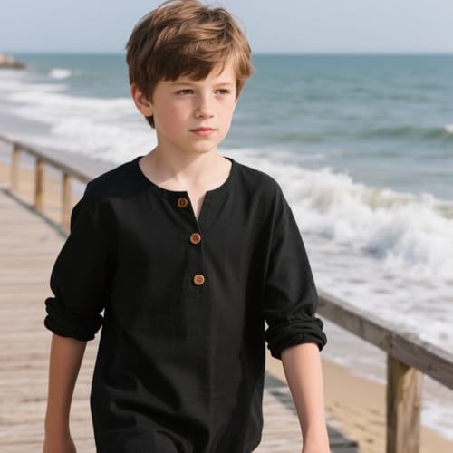 Boys Long Sleeve Henley Shirt Lightweight Button Up Dress Shirts Summer Beach Clothes 4
