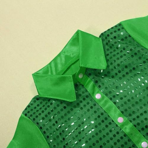 Kids Girls Sparkly Sequins Dance Top Boys Long Sleeve Button Down Shirt for Jazz Dance Long Sleeve (Green, 7-8 Years) 5