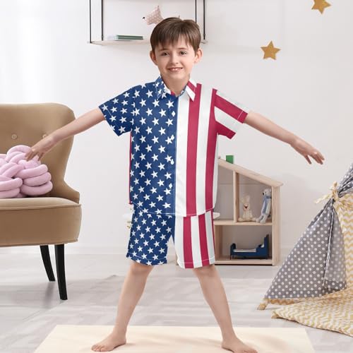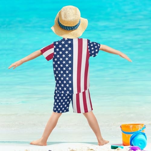American Flag Stars Stripes Short Sleeve Hawaiian Button Down Shirts and Short Sets for Boys Toddler Summer Outfits 4