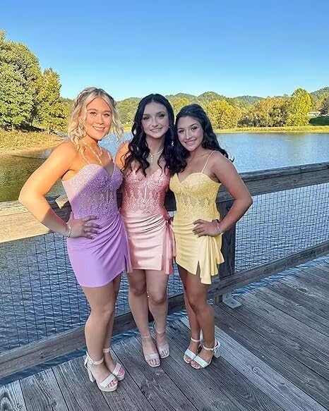 More information about Sparkly Satin Homecoming Dresses for Teens Corset Lace Applique HOCO Dresses 2025 Short Prom Party Gowns