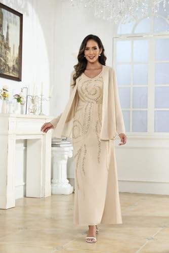 • Features:2 Pieces Mother of The Bride Dresses for Wedding with Jacket Sequin Long Sleeve Beaded Grandmother of The Groom Outfits Floor Length Wedding Guest dresses for Women Fall
