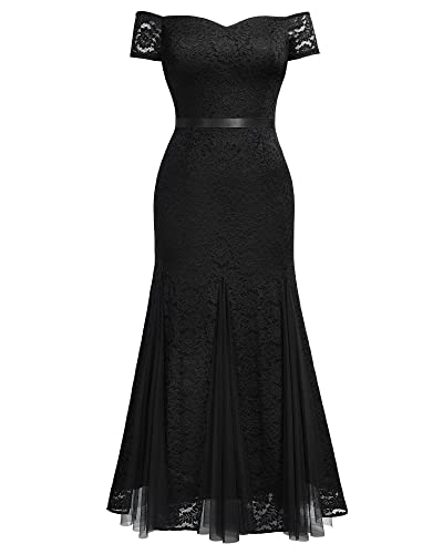 Miusol Women's Plus Size Formal Off Shoulder Vintage Floral Lace Mermaid Maxi Evening Party Dress 1