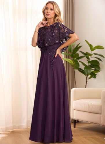 More information about Cape Sleeves Mother of The Bride Dresses for Wedding Long Sequin Laces Chiffon Mother of The Groom Dress with Pockets