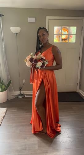 More information about Miao Duo Women's V Neck Satin Bridesmaid Dresses with Slit Spaghetti Straps Formal Prom Gowns with Pockets MDPM96