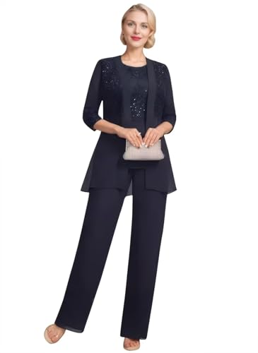 More information about 3 Pieces Mother of The Bride Pant Suits for Women Dressy Elegant Wedding Chiffon Lace Formal Outfits with Jacket RJX03